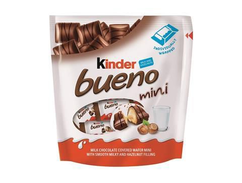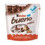 - Kinder Bueno Mini Mix offers the same delicious combination of crispy wafer, milk chocolate, and hazelnut milky filling in individual, bite-sized pieces, perfect for sharing.